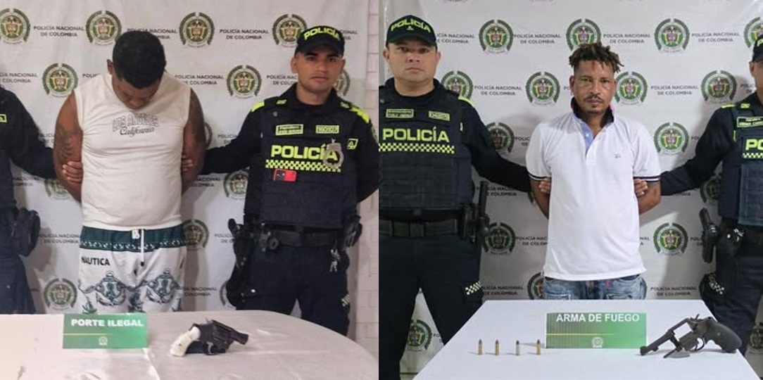 La Policía Nacional, en el Atlántico, a través de unidades adscritas a la subestación de Policía Playa Mendoza y la estación de Policía del municipio de Luruaco, mediante labores de patrullaje en actividades de registro y control, logran la captura en flagrancia de dos personas, por el delito de fabricación, tráfico, porte o tenencia de armas de fuego, en hechos aislados.