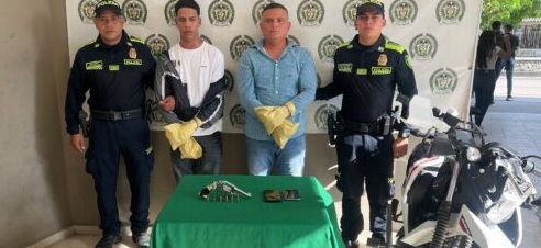 Gracias a la rápida reacción policial, se inició una persecución que terminó con la captura de los presuntos agresores, de 30 y 18 años, a quienes se les incautó un revólver calibre 38 con seis cartuchos —cuatro de ellos percutidos—, una motocicleta y dos celulares.