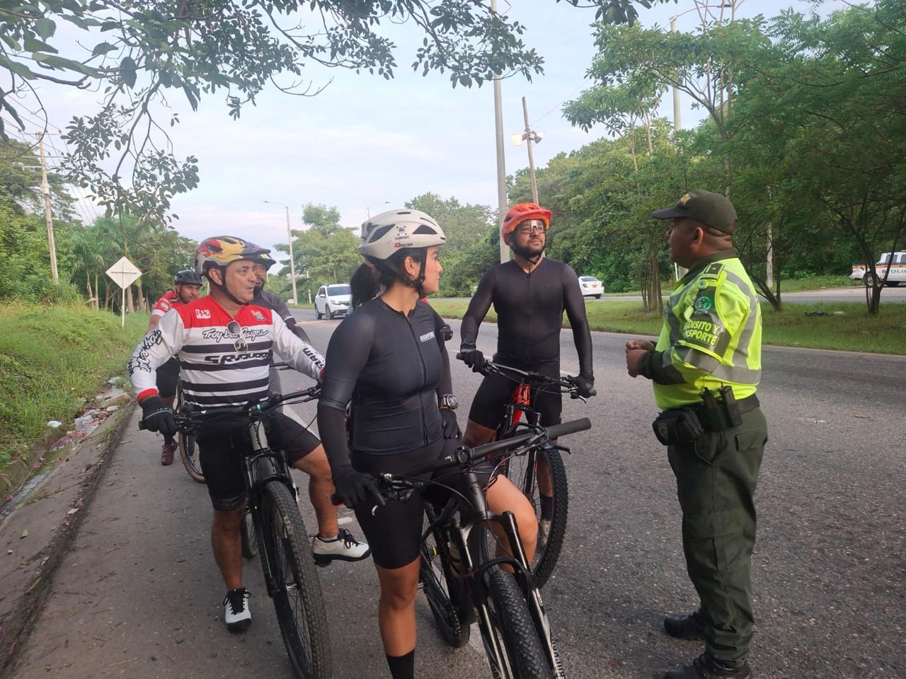 La Seccional de Tránsito y Transporte de Bolívar intensifica la campaña «Manéjate Bien» este fin de semana en la Ruta 9005, kilómetro 96, cuadrante vial Turbaco, para promover la seguridad vial entre los ciclistas en Turbaco.
