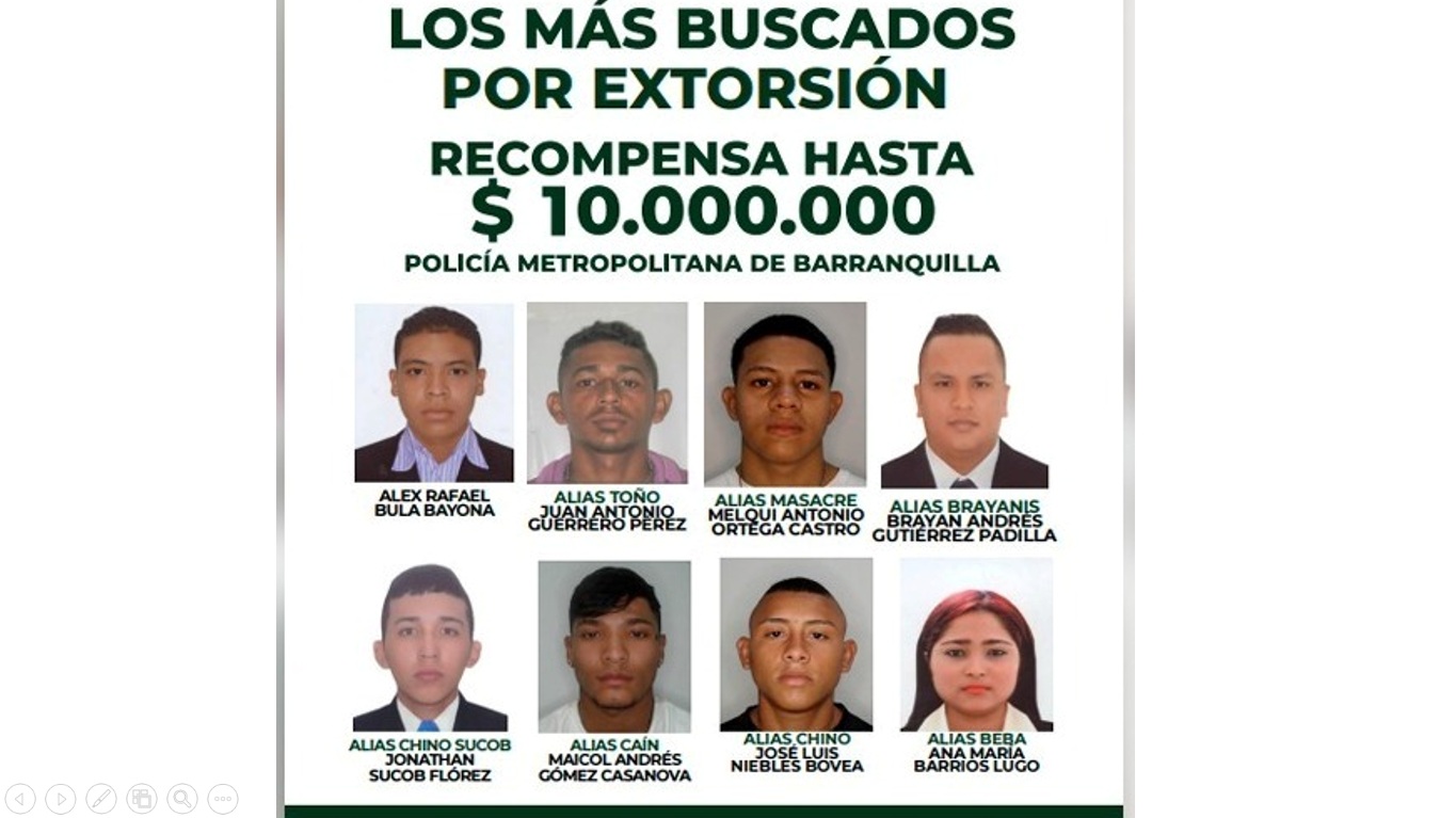 La Policía Metropolitana de Barranquilla instaló una valla con los rostros de las ocho personas más buscadas por extorsión en la capital del Atlántico. Se trata de siete hombres y una mujer, señalados de ser parte de estructuras criminales que afectan la seguridad en la ciudad.