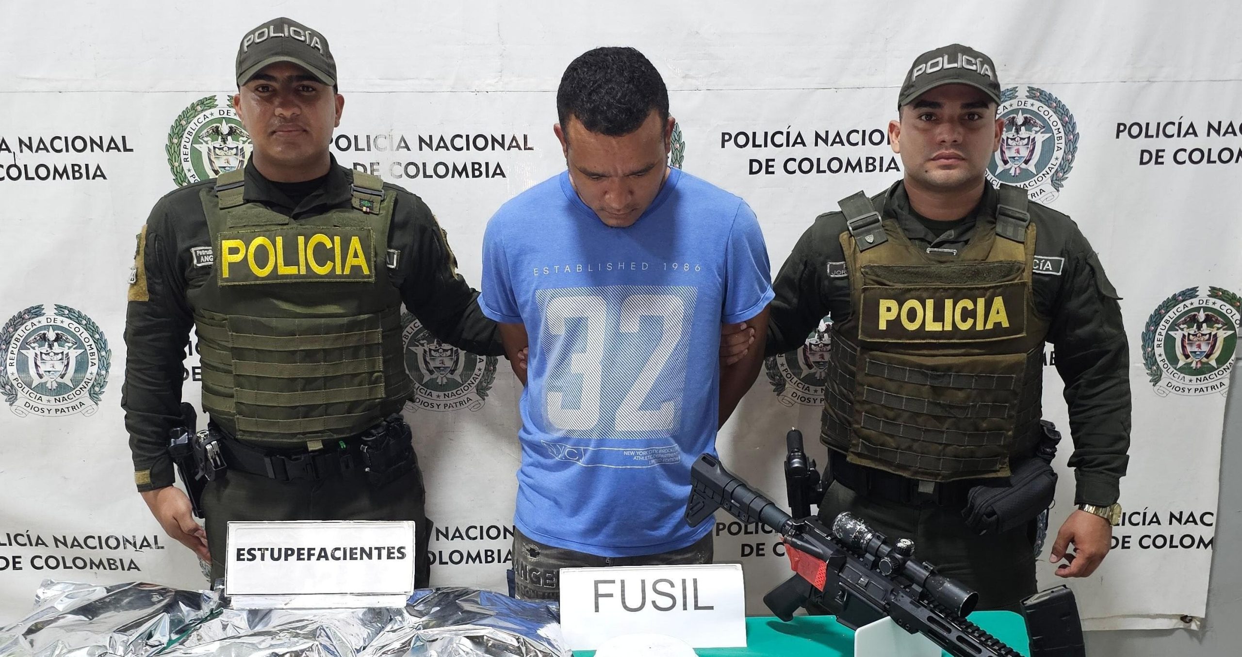Durante el procedimiento, las autoridades incautaron un fusil AR-15 calibre 5.56 milímetros, equipado con una mira telescópica 4×32, además de un proveedor, 25 cartuchos calibre 9 milímetros y 3.000 gramos de marihuana.