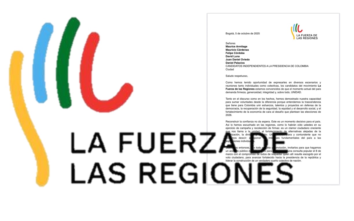 La coalición ‘La Fuerza de las Regiones’, conformada por los exgobernadores Aníbal Gaviria, Juan Guillermo Zuluaga, Héctor Olimpo y el exalcalde Juan Carlos Cárdenas, anunció este lunes la convocatoria oficial a una consulta interpartidista que se realizará en marzo de 2026 con el objetivo de definir un único candidato independiente para las próximas elecciones presidenciales.