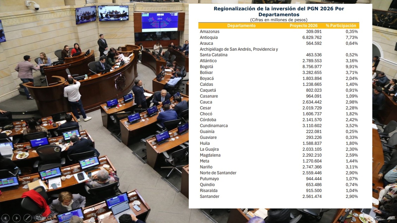 En total, el PGN asciende a $546,9 billones, de los cuales $88,4 billones se destinarán a inversión social. De ese monto, $65,4 billones irán directamente a las regiones, y el Atlántico participará con un 3,16% del total nacional.