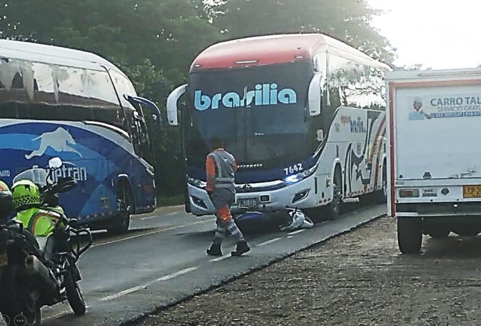 Un bus de la empresa Brasilia se salió de su carril e impactó a un motociclista en la vía de Sabanalarga, a aproximadamente un kilómetro de la entrada a la vía La Peña.