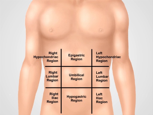 Según explican profesionales del área de gastroenterología, esta división se traza mediante dos líneas horizontales —una por debajo del reborde costal y otra sobre las crestas ilíacas— y dos líneas verticales a la altura de las clavículas, delimitando así tres filas: superior, media e inferior.