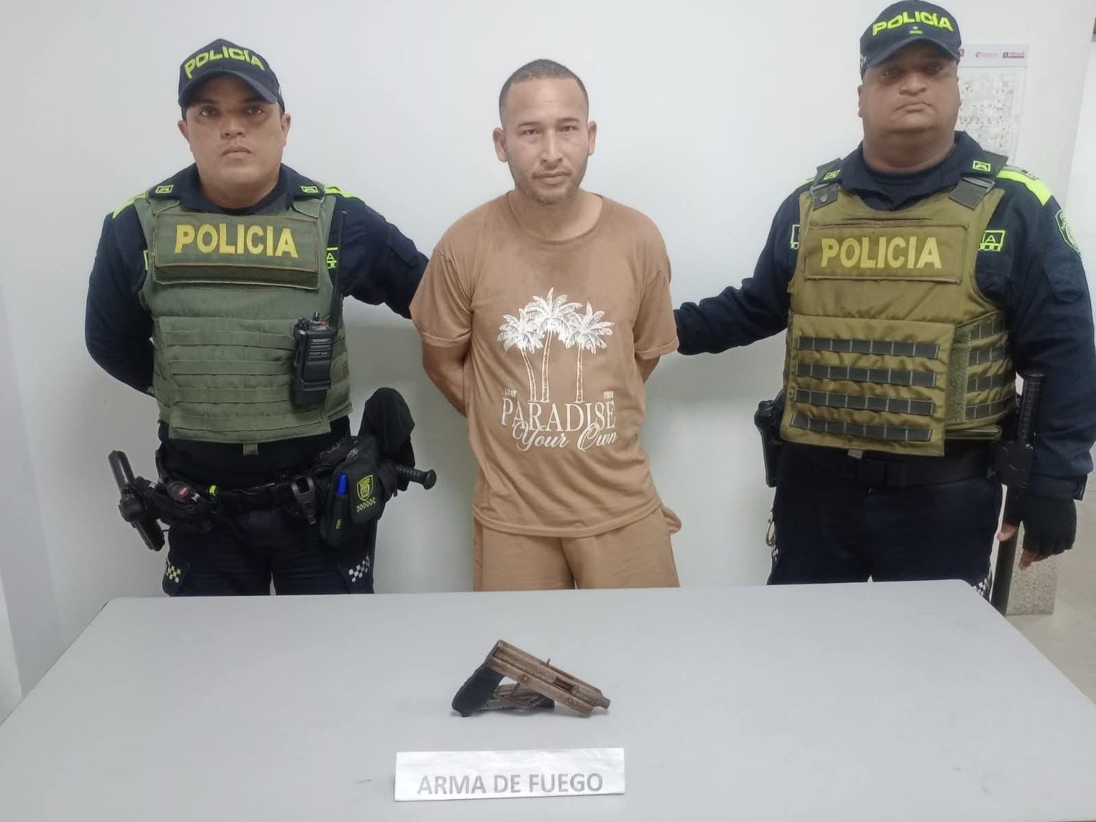 El procedimiento se llevó a cabo en la carrera 34 con calle 15, donde los uniformados, durante labores de registro y control, encontraron un arma de fuego artesanal en poder del ciudadano.