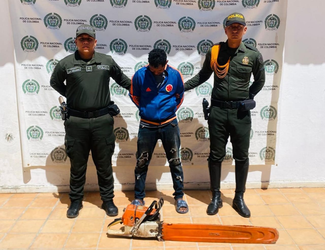 El procedimiento se llevó a cabo en una zona rural del municipio de Mompox. En el lugar, los uniformados sorprendieron a Andrés Antonio Sosa Jiménez, de 30 años, mientras utilizaba una motosierra para derribar árboles nativos.