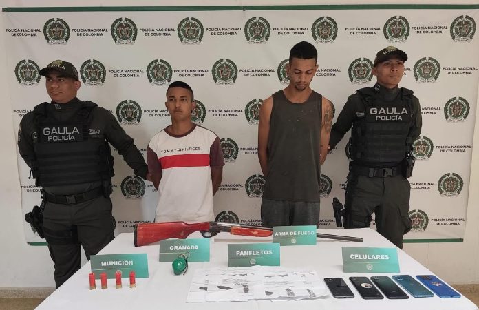 De acuerdo con las investigaciones, los capturados, de 23 y 24 años, serían los encargados de intimidar y exigir pagos extorsivos en la zona oriental del departamento.