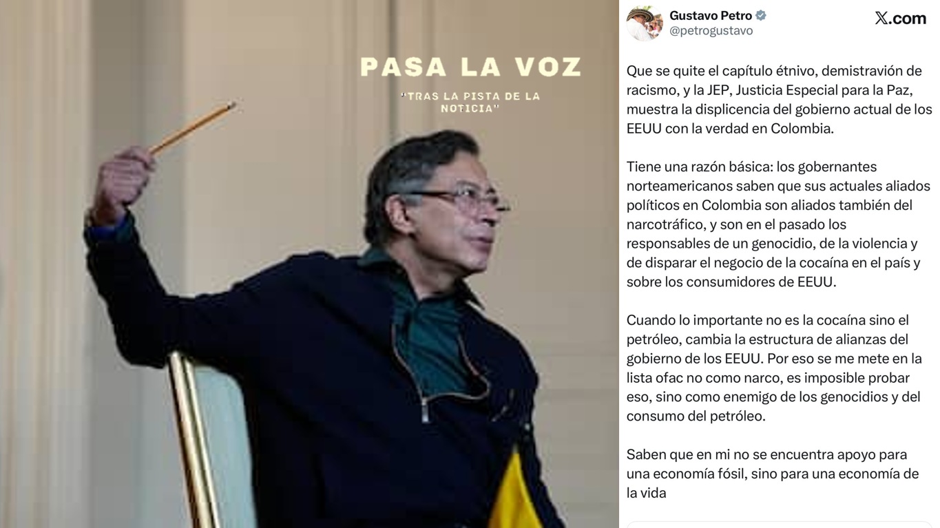 El pronunciamiento del jefe de Estado colombiano ocurre en un momento de tensión diplomática, luego de varios desencuentros públicos entre el Gobierno Petro y autoridades estadounidenses en temas de cooperación antidrogas y política internacional.