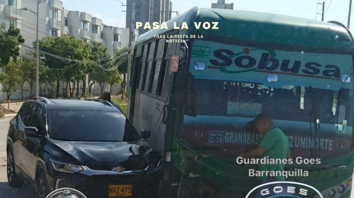Según los primeros reportes, un vehículo particular habría ignorado la señal de ‘PARE’, provocando una colisión con un bus de servicio público de la empresa SOBUSA.